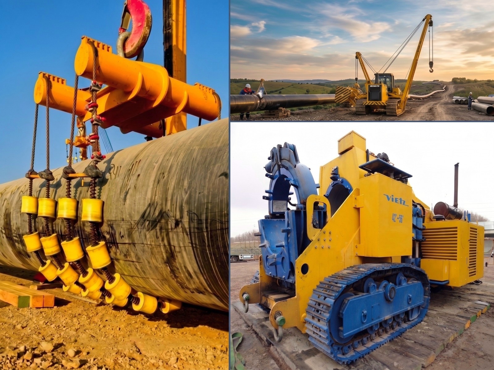 Pipe support and lowering-in solutions designed for safe handling, transport, and installation of pipelines.